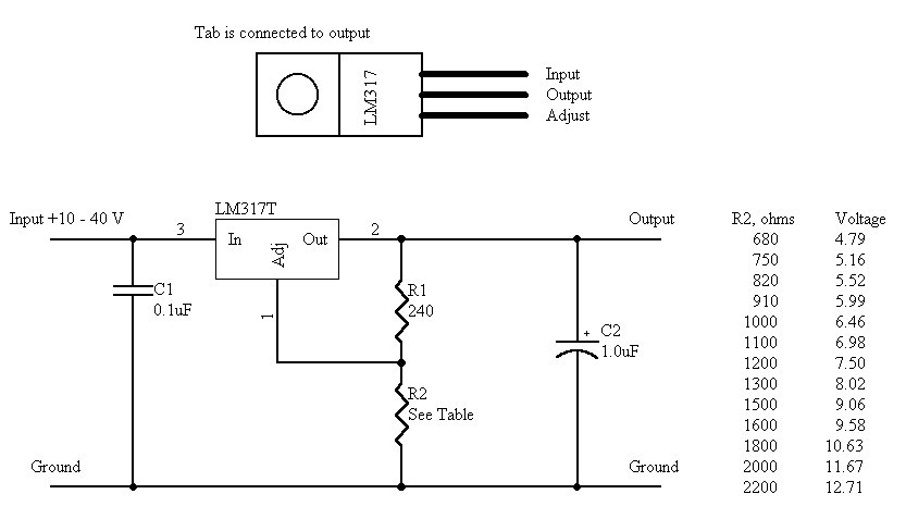 Aqui os dejo el esquema de montaje, eso si, tener en cuenta que en el esquema los pines del LM317 no estan en el orden fisico correcto, para ello esta el dibujo encima del esquema.